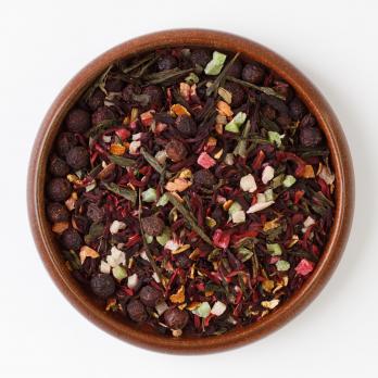 Состав: каркадэ с добавлением зеленого чая, кусочками манго, папайи, цедры апельсина.